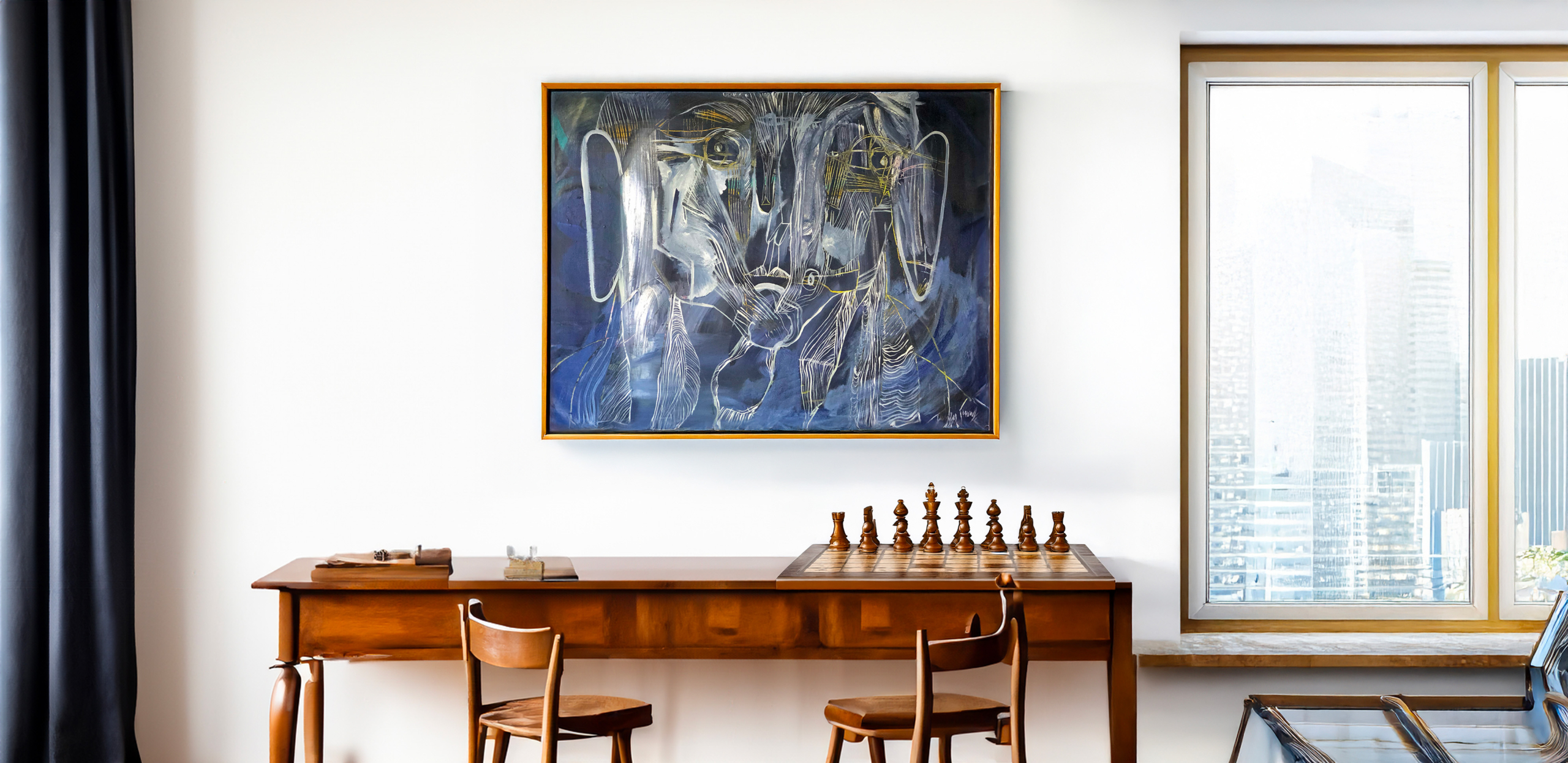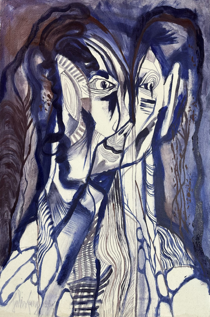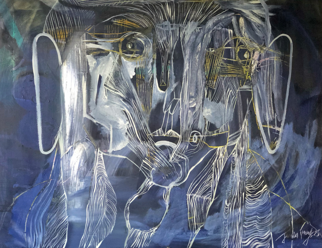“Le trait comme expression” nous signifie que c’est par l’acte de tracer que je m’ exprime et c’est ainsi qu’est né mon langage pictural.