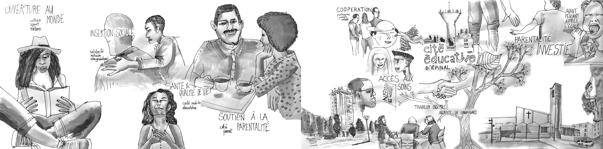 Voici quelques exemples réalisés lors de séminaires de travail à Nancy, pour le lancement de Nancy Thermal et Epinal pour le lancement de la Cité Éducative.